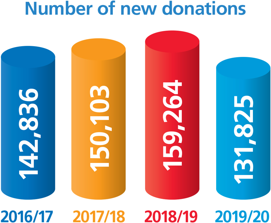 The number of people registering to give blood between 1 April - 31 March in the specified time period.